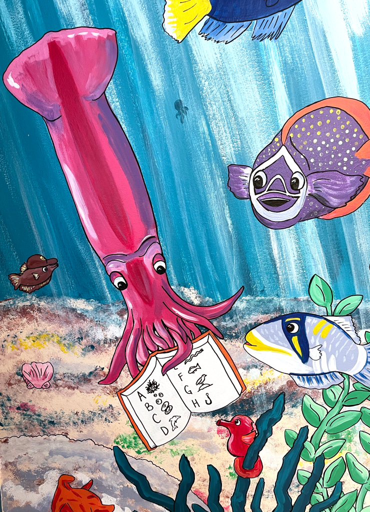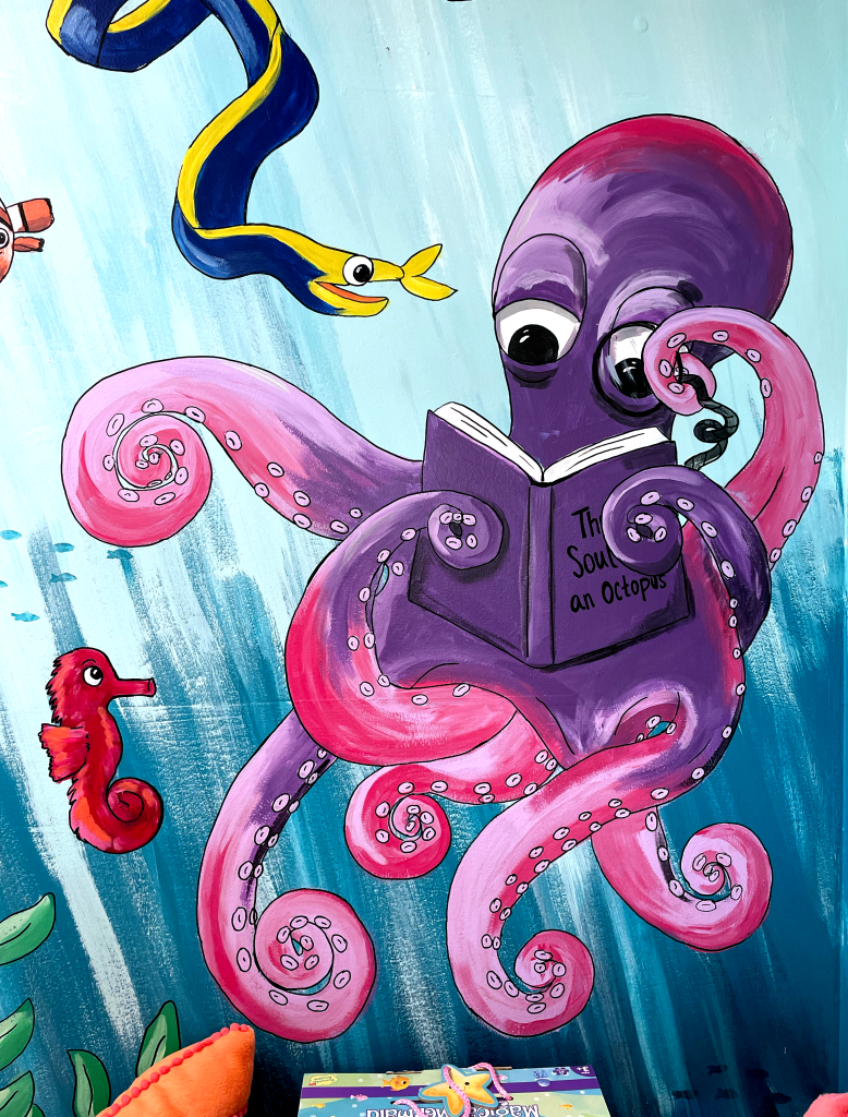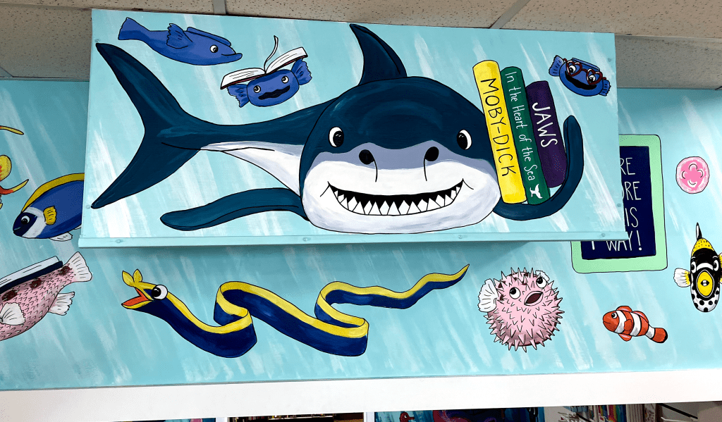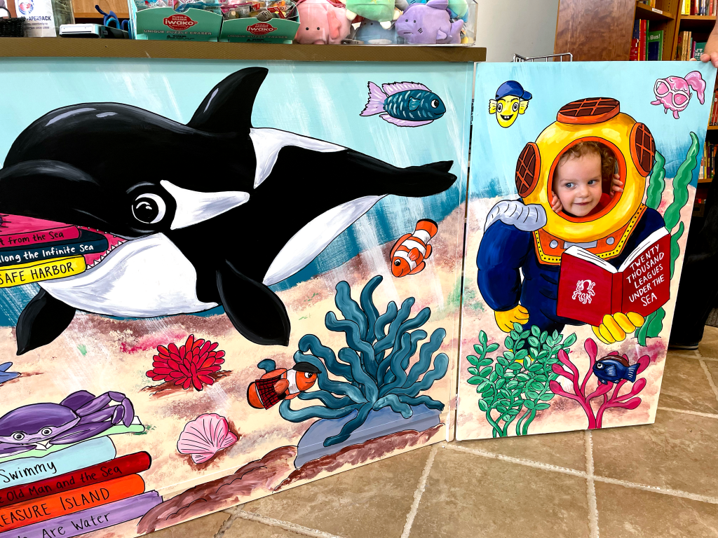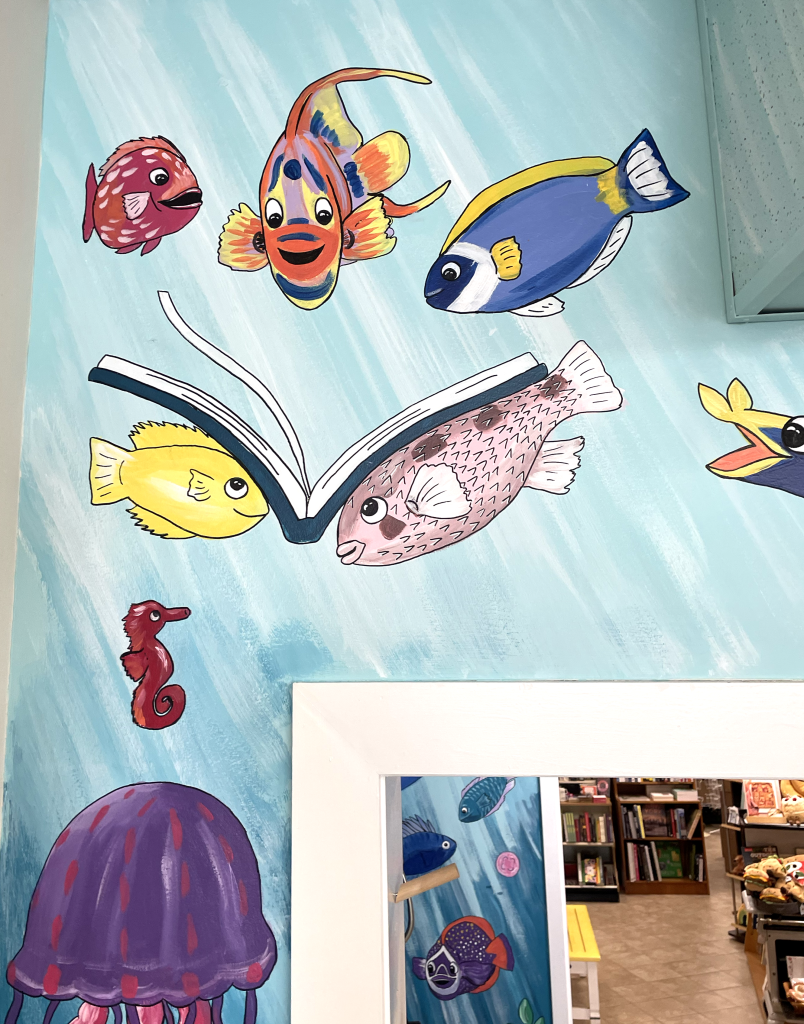 Literary ocean mural in the children’s section at Bank Square Books in Mystic, Connecticut, 2023