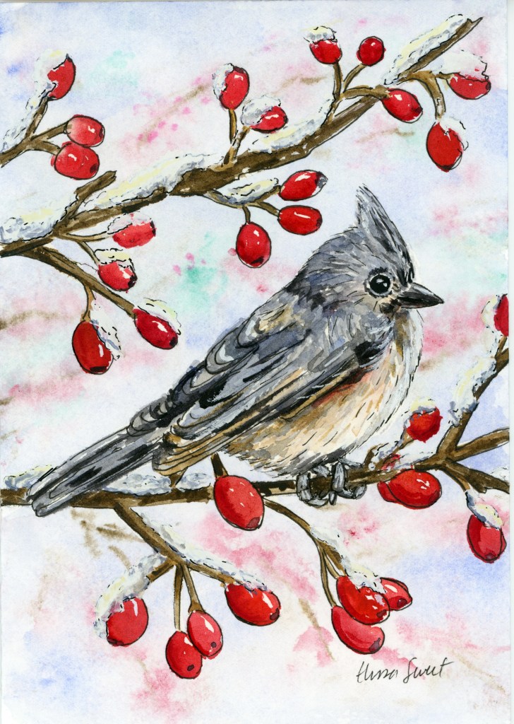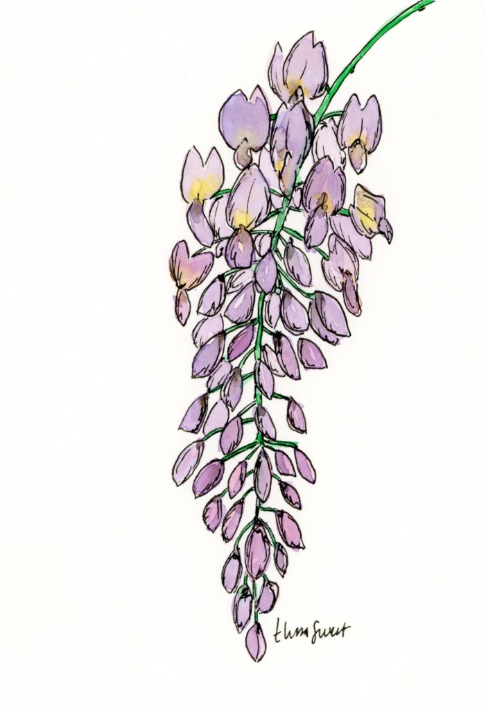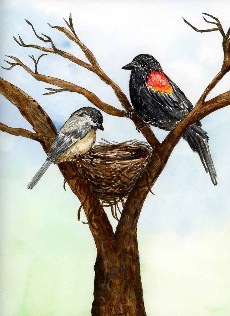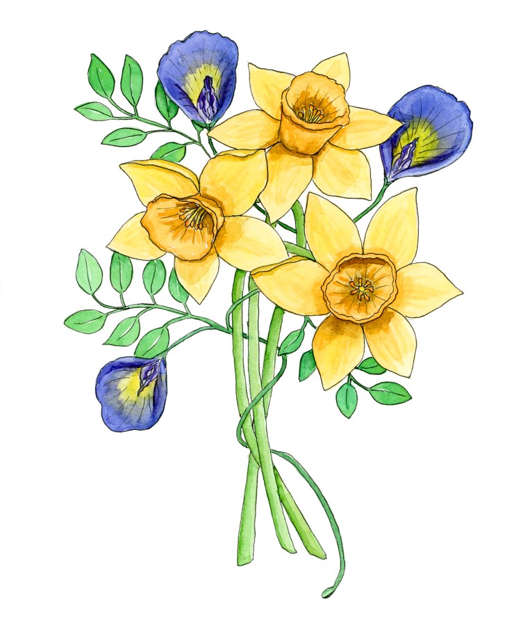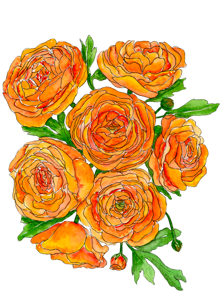 I use watercolor and ink for my nature illustrations. I love creating custom paintings to capture a person’s favorite plant or bird, their wedding bouquet, or flower arrangements centered around a certain theme or meaning, based on the traditional language of flowers.